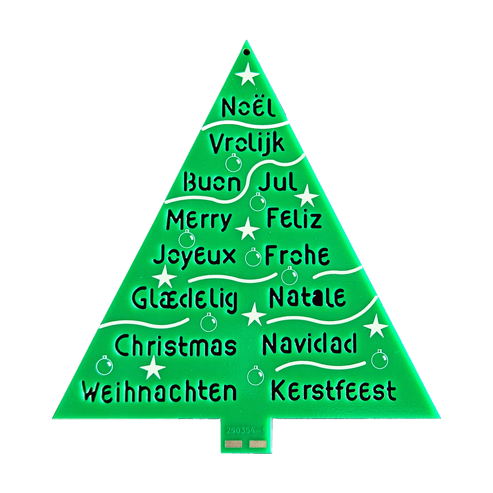 Bring some engineering magic to your festive season with the Wordy Christmas Tree, a unique DIY electronics kit designed by Elektor. This beautifully engineered 3D Christmas tree combines eleven PCBs, a Raspberry Pi Pico, and 27 addressable RGB LEDs to illuminate Christmas greetings in seven languages: Danish, Dutch, English, French, German, Italian, and Spanish.